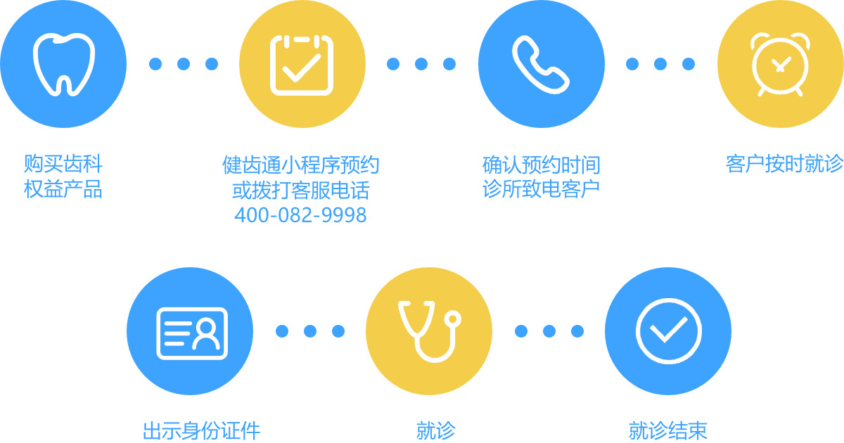 因一些诊所客流量较大,强烈建议客户在初诊前先向全齿健客服预约。